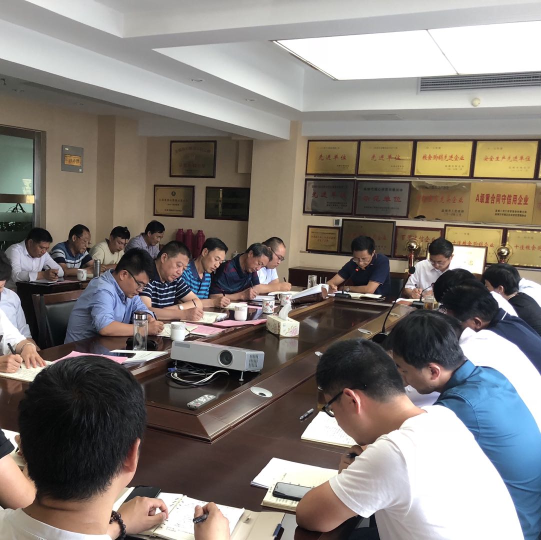 江苏亭粮产业发展有限公司董事长朱培章同志传达了市发改委有关粮食行业危化品治理和整改方案的会议精神,结合我区目前夏粮收购实际,朱总指出一要执行好 政策,强化各项工作措施,做到优质优价、以质论价。二要高度重视夏收工作,做好优质服务,提升为农服务水平。三要严格遵守工作纪律,收购人员在做好热情服务的同时,要廉洁自律,保证收购公平公正。四要做好高温防护和防疫工作,采取必要的防暑降温和防疫措施,确保售粮农民和收粮职工的人身安全。五要严抓安全生产,绷紧安全之弦,严格落实安全生产管理制度措施,确保夏粮收购工作安全有序。